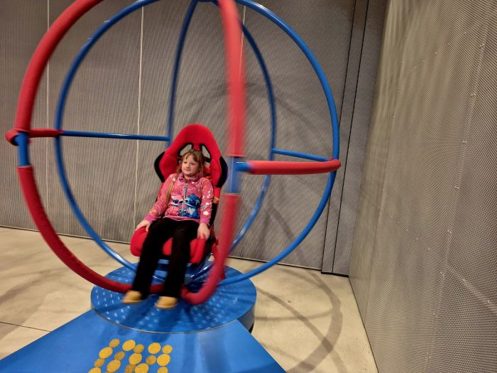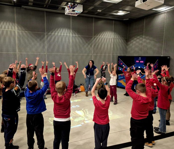 Kolejnym zadaniem, które wymagało od najmłodszych dobrej kondycji był „Trening astronauty”. Dzieci miały możliwość zbadać umiejętność własnego refleksu, koordynacji, równowagi, pamięci i spostrzegawczości wykonując różnorodne ćwiczenia na sali inspiracji. Uczniowie nabyli sprawność: ZRĘCZNOŚĆ.