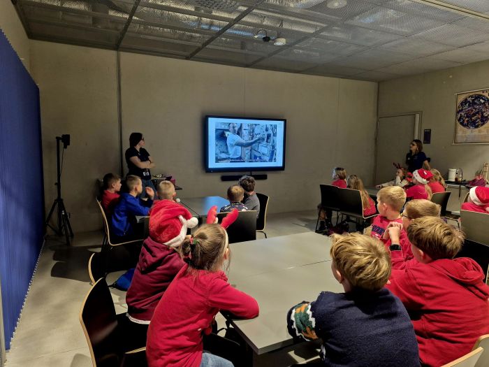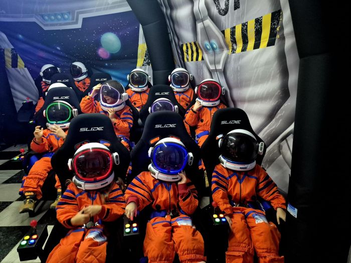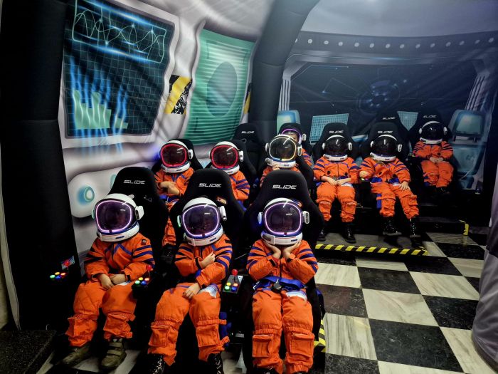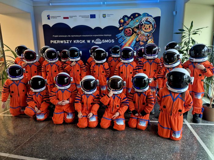 dzieci ubrane w prawdziwe skafandry astronautów uczestniczyły w
