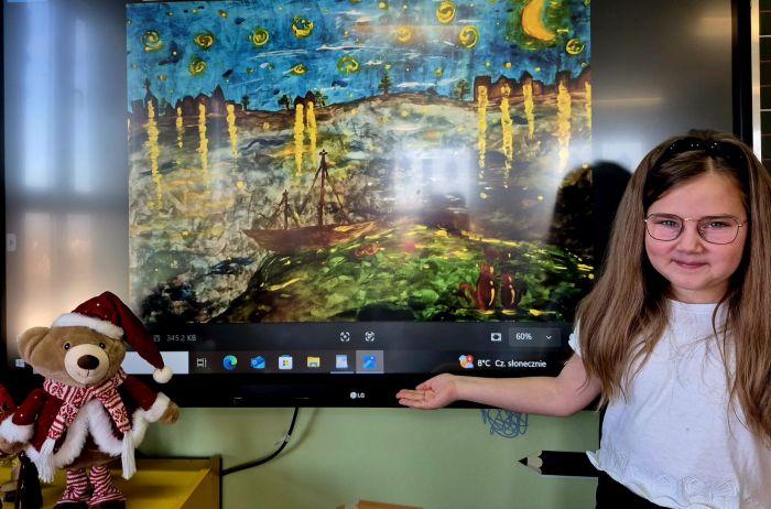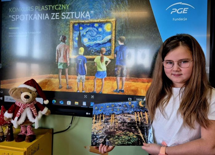 w Bujakowie została laureatem IV edycji ogólnopolskiego konkursu plastycznego „Spotkanie ze sztuką”. Zadaniem uczestników było stworzenie własnej interpretacji wybranego obrazu Vincenta van Gogha dowolną techniką. Dziewczynka wykonała pracę plastyczną pt.: „Kocianocka” interpretując dzieło „Gwiaździsta noc” wybitnego malarza. Nagrodą dla laureata oraz całej jego klasy i opiekunów – będzie jednodniowa wycieczka do wybranego muzeum, połączona z lekcją muzealną. Dodatkowo, każdy laureat otrzyma indywidualną nagrodę w postaci bonu. Jest to ogromne wyróżnienie i osiągnięcie naszej uczennicy, ponieważ konkurs cieszył się dużym powodzeniem, z rekordową liczbą nadesłanych prac. Marysi życzymy dalszych sukcesów, rozwijania kreatywności, wyobraźni i zachęcamy ją do aktywnego uczestnictwa w kulturze, ponieważ ma ogromny talent i wrodzone zdolności malarskie.