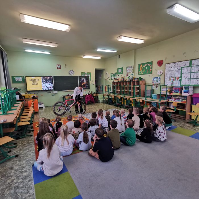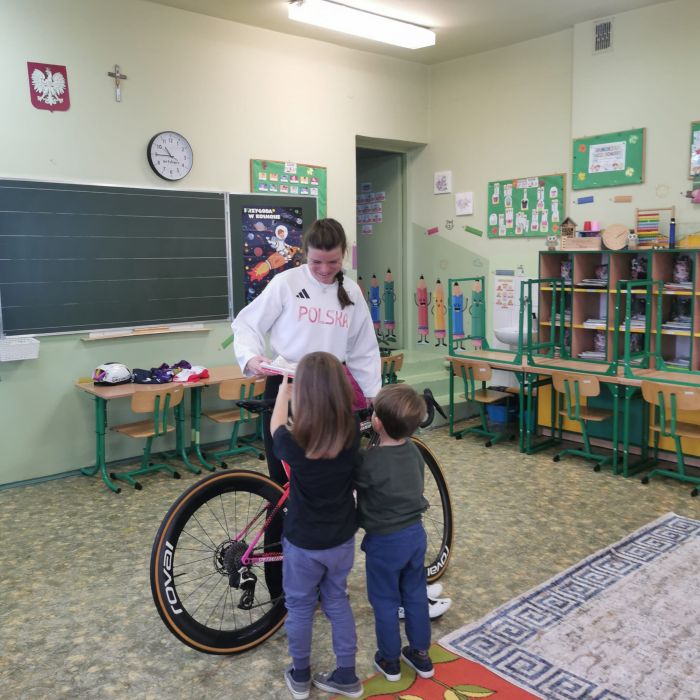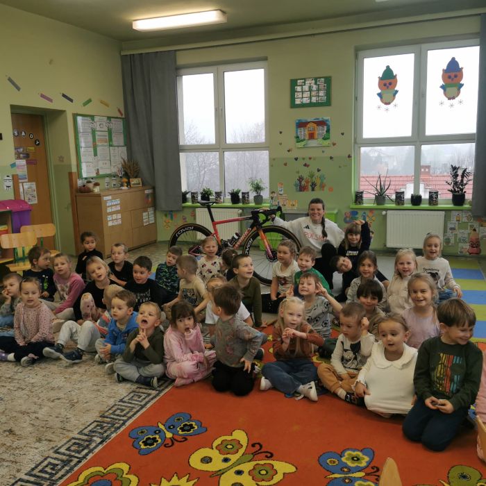 W naszym przedszkolu odbyły się zajęcia „W zdrowym ciele zdrowy duch”. Tym razem dzieci miały możliwość zapoznania się z kolejnym sportem – kolarstwem. Układanie puzzli peletonu, przypomnienie zasad bezpiecznego poruszania się na rowerze – to zadania z którymi przedszkolaki poradziły sobie znakomicie! W tym dniu czekała na nas niespodzianka, odwiedziła nas polska kolarka szosowa Marta Lach. Pani Marta opowiedziała nam o kolarstwie, pokazała swój profesjonalny rower oraz cały sprzęt. Podzieliła się ciekawymi historiami i opowiedziała jak ważne jest spełnianie swoich marzeń! Dziękujemy bardzo Pani Marcie za odwiedziny, życzymy kolejnych sukcesów