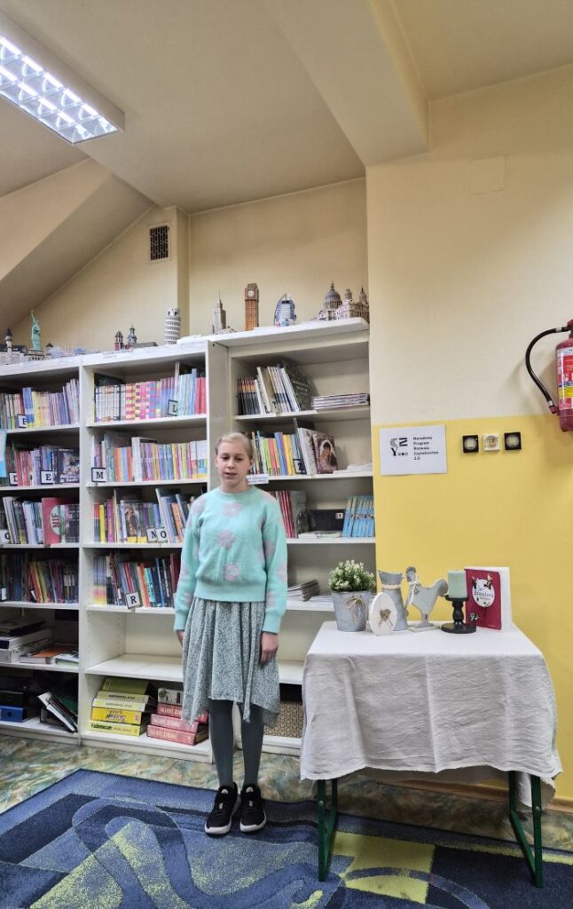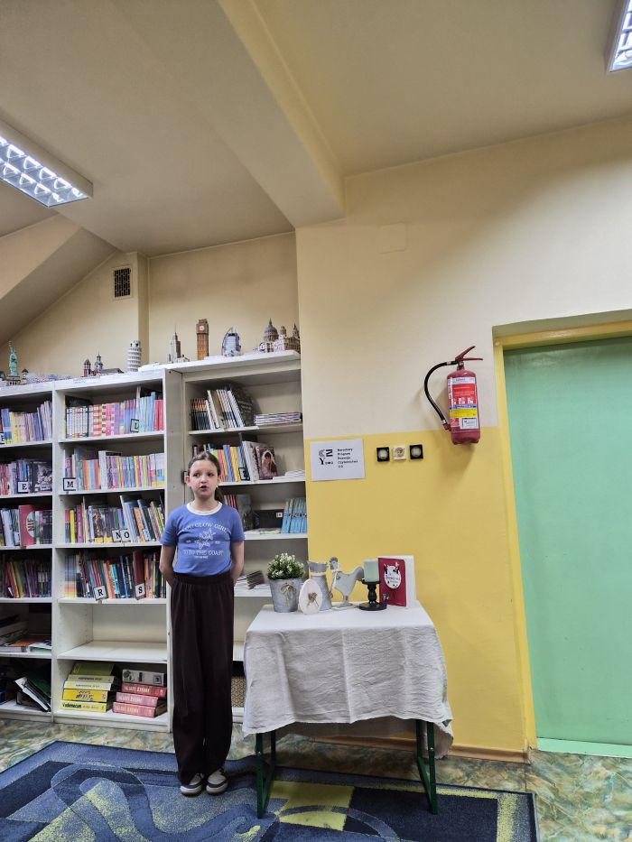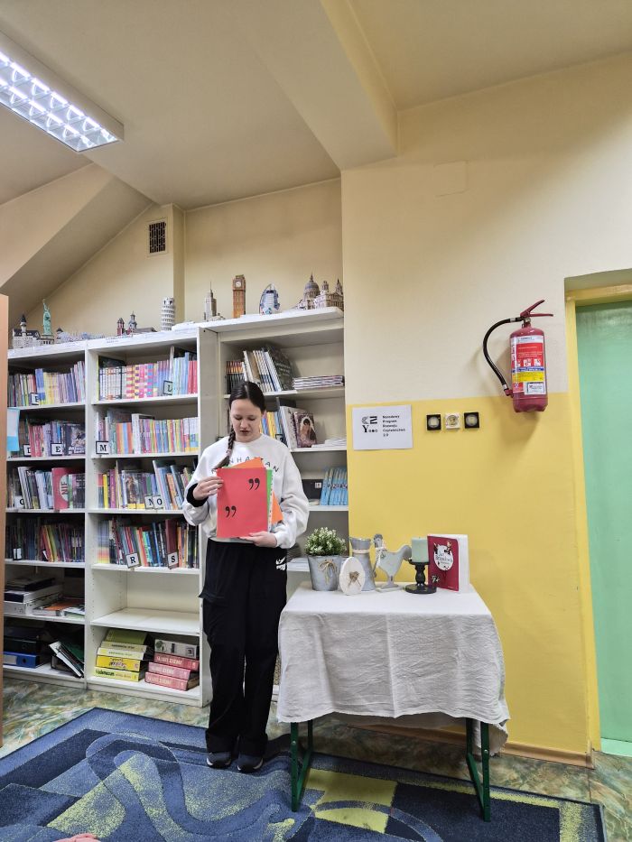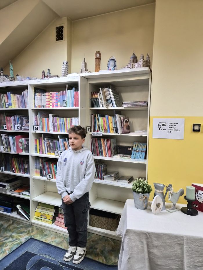 W kwietniu na całym świecie obchodzony jest Dzień Książki dla Dzieci. Data 2.04 związana jest z dniem urodzin Hansa Christiana Andersena- duńskiego pisarza, poety. Z tej okazji w naszej szkole 15 kwietnia odbył się konkurs recytatorski dla uczniów klas 4-6 oraz 7-8. Dzieci i młodzież, co prawda nie prezentowały utworów wspomnianego wcześniej twórcy, natomiast swoje umiejętności recytatorskie prezentowały, deklamując wiersze Jana Brzechwy (kl.4-6) oraz Wisławy Szymborskiej (kl.7-8). Celem konkursu, zorganizowanego w ramach Narodowego Programu Rozwoju Czytelnictwa, była m. in. popularyzacja piękna i kultury języka polskiego, doskonalenie sztuki żywego słowa, zachęcanie do poszukiwań różnorodnych rozwiązań artystycznych, pobudzanie aktywności twórczej, stworzenie możliwości zaprezentowania swojej wrażliwości oraz prezentowanie najcenniejszych dzieł literatury polskiej i powszechnej. Konkurs odbył się w bibliotece szkolnej w miłej, kameralnej atmosferze. Najlepsi recytatorzy otrzymali 20 kwietnia nagrody książkowe (zakupione w ramach NPRCz), a wszyscy uczestnicy pamiątkowe dyplomy oraz drobne upominki. Serdecznie gratulujemy wszystkim uczestnikom konkursu, a w szczególności uczniom, którzy zajęli miejsca premiowane !!!